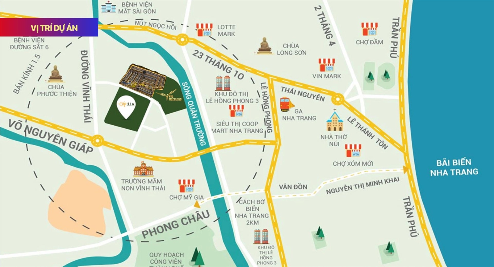 - Vị trí: Gói 6, khu đô thị Mỹ Gia, đường Võ Nguyên Giáp, phương Vĩnh Thái, TP. Nha Trang